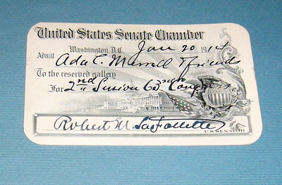 U.S. Senate Chamber Pass-1914-Robert M. Lafollette,Signature VG