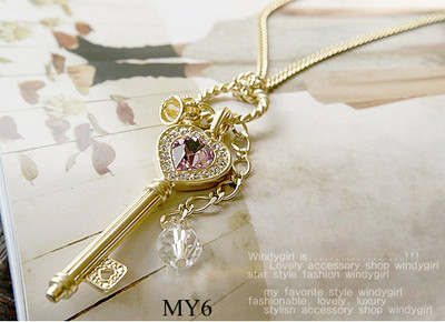 Title (ebay affiliate link): 1pc Lady's Vintage Gold Long Chain Heart Key Pendant Charms Necklace MY6