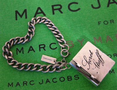Title (ebay affiliate link): NEW MARC JACOBS VINTAGE STYLE BRACELET/KEY CHAIN Book Locket w/Sheer Gift Bag
