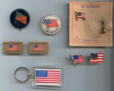 Title (ebay affiliate link): Three Vintage US Flag Pins, Four US Flag Lapel Pins & US Flag Keychain