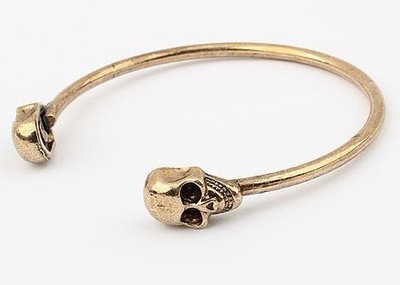 Title (ebay affiliate link): New Retro Gothic/Punk Vintage Bronze Skull Heads Bangle Bracelet