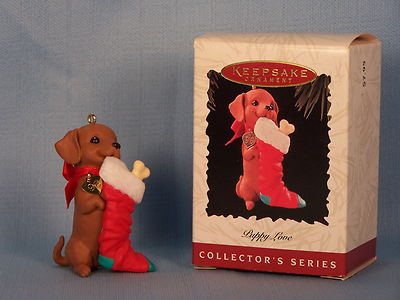 Title (ebay affiliate link): PUPPY LOVE #6 - DACHSHUND - 1996 HALLMARK ORNAMENT