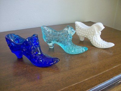 Title (ebay affiliate link): COLLECTION LOT 3 FENTON SLIPPER CAT SHOES COBALT AQUA MILK GLASS No Reserve