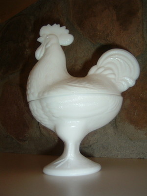 Vintage Milk Glass Standing Rooster Covered Candy Dish