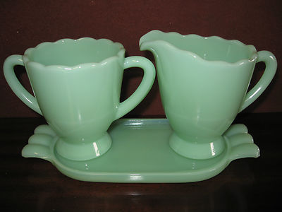 Title (ebay affiliate link): Jadeite glass Creamer and sugar coffee set with tray jade jadite green milk art
