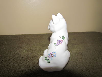 Title (ebay affiliate link): Fenton Cat, Milk Glass with Violets, Handpainted, Signed V. Gaerke?