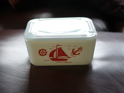 Vintage McKee Ships Milk Glass Refrigerator Dish w/Lid