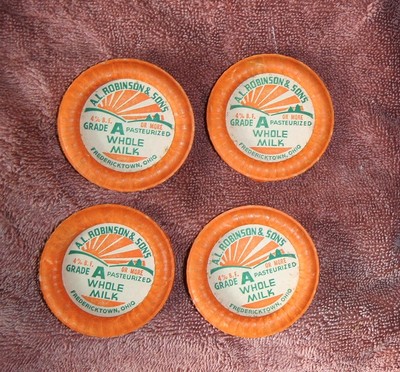 Title (ebay affiliate link): 4 Robinson Sons Fredericktown Ohio Glass Milk Bottle CAPS Valley Run Dairy Farm