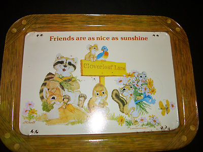 vintage LK POWELL TIN / METAL CHILDS TV TRAY FRIENDS ARE AS NICE AS SUNSHINE