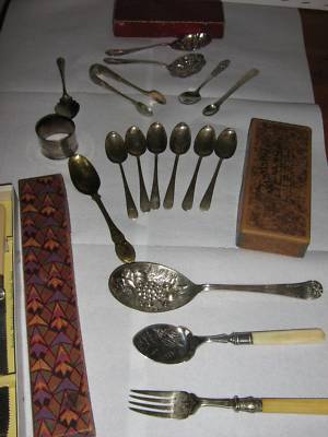 Title (ebay affiliate link): Large job lot of antique silver/ silver plate cutlery