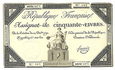 Title (ebay affiliate link): Orig. 1792 French Revolution ASSIGNAT 50 Livres 1792 VF+