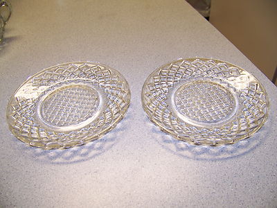Set of 2 DEPRESSION 6" Glass Plates! Diamond Pattern GORGEOUS!