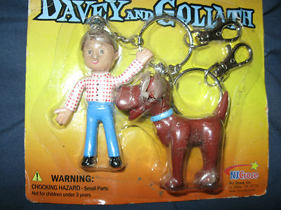 VINTAGE RELIGOUS DAVEY AND GOLIATH BENDABLE KEYCHAINS NJ GROCE