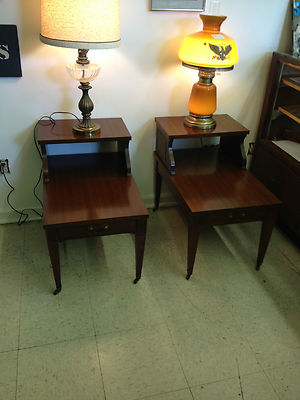 Title (ebay affiliate link): 2 Vintage Mersman Step End Tables with Drawers / Walnut in Excellent Condition