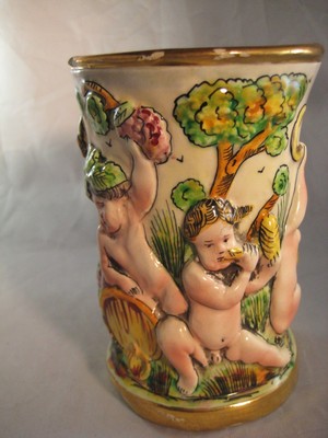 Title (ebay affiliate link): Antique CAPODIMONTE? Italian Majolica Creamer,Style Figural Cherubs Hand Painted