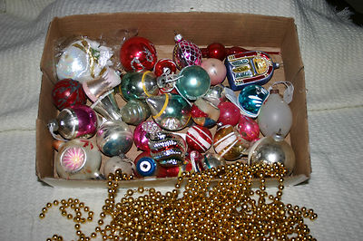 Old Gold String Glass Beads and Old Christmas Bulbs