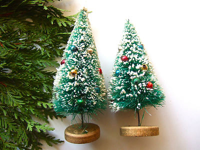 Title (ebay affiliate link): 2 Vintage Green Snow Tipped Bottle Brush Christmas Tree Mercury Glass Bead