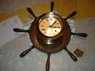 Nice Vintage Hermle Ships Clock Ships Wheel Plaque