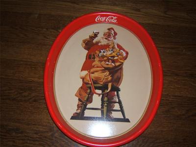 Title (ebay affiliate link): ANTIQUE VINTAGE COCA COLA RED SANTA METAL SERVING TRAY !!