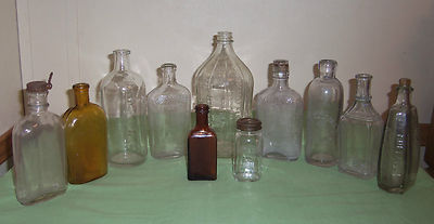 LOT 11 Vintage Antique Glass Bottles Flask Milk Clear Amber JB Williams Atlas