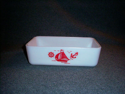 Title (ebay affiliate link): Vintage McKee fridge container - milk glass - red boat, anchor, wheel - nice!