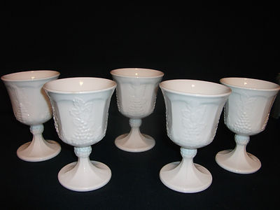 Title (ebay affiliate link): 5 Vintage Indiana Harvest Grape Milk Glass Goblets 5 1/4" T