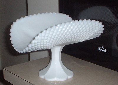 Title (ebay affiliate link): Vintage Milkglass Banana Dish / Stemmed Fruit Bowl Unmarked