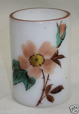 Title (ebay affiliate link): Antique Victorian Hand Painted Wild Roses Bristol Milk Glass Toothpick Holder