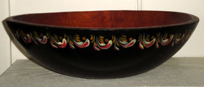 Title (ebay affiliate link): Wood Dough Bowl Hand Painted Black Exterior with Rim Decoration