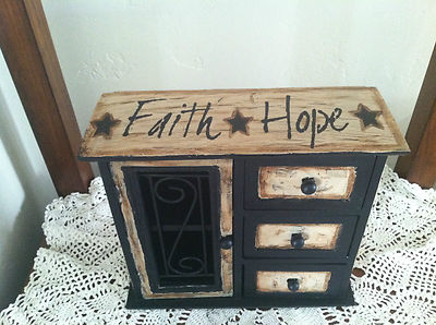 Title (ebay affiliate link): Primitive, Americana,Country Farmhouse Crackled, Jewelry Box with Drawers