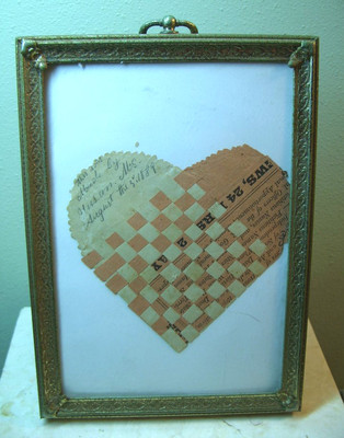 Title (ebay affiliate link): Antique 1889 Tramp / Folk Art Braided Paper Heart Signed & Dated
