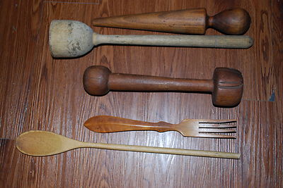 Title (ebay affiliate link): Lot of 6 Antique Primitive Wooden Kitchen Utensils Tools Butter Paddle Mashers