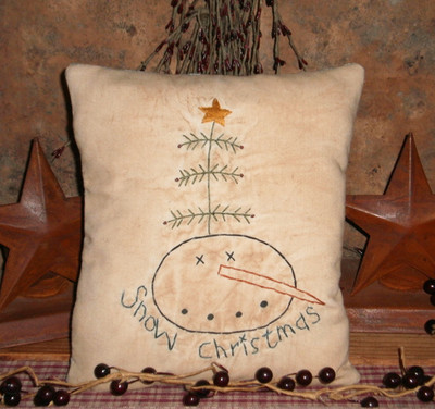 Title (ebay affiliate link): ~SNOW DAYS CHRISTMAS SNOWMAN~ Primitive Stitchery Sampler Pillow