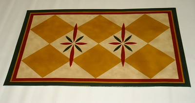 Title (ebay affiliate link): PRIMITIVE FLOOR CLOTH FLOORCLOTH DIAMOND & STAR 2 X 3 Reproduction rug