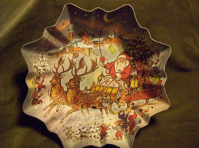 Title (ebay affiliate link): Vtg Germany Christmas Pressed Paper Cardboard Fluted Cookie Dish Tray - Santa