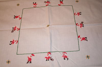 Vintage ELFS ELVES embroidered German Christmas tablecloth