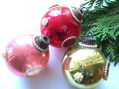 Title (ebay affiliate link): 3 Vintage Mercury Glass Pearl & Glitter Christmas Ornaments