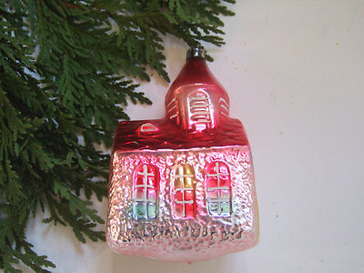 Lg Vintage Antique Blown Mercury Glass Pink Church Christmas Ornament -Germany