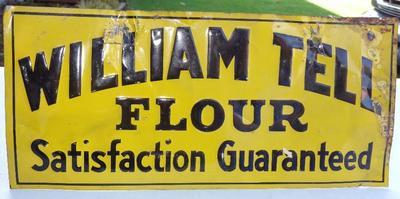 EARLY WILLIAM TELL FLOUR TIN SIGN