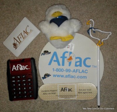 Aflac Package: 3" Duck, Duck Pen, 2 AFLAC pins, Calculator, mouse pad,Sewing Kit