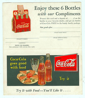 Title (ebay affiliate link): VINTAGE 1930'S COCA COLA COUPON GOES GOOD WITH FOOD