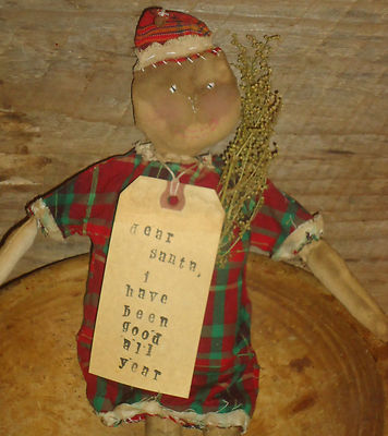 Primitive doll christmas rusty bell candy cane santa dress grungy sweet annie