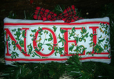 Title (ebay affiliate link): Primitive Repurposed CHRISTMAS Tablecloth Ornie Pillow NOEL Holiday Decor