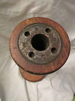 Vtg Vermont '33 Industrial Textile Wooden Bobbin Spool Metal Band Screws 11 1/4"