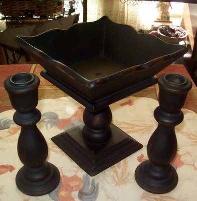 Title (ebay affiliate link): Primitive Footed Wooden Pedestal Bowl~2 Wood Candle Stick Gathering