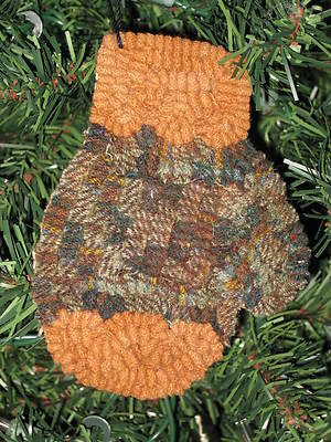 Title (ebay affiliate link): Primitive MITTEN Folk Hooked Rug Christmas Ornament Sampler mat Green PLAID Gold