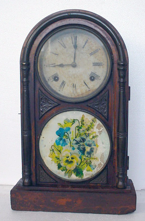 Title (ebay affiliate link): ANTIQUE COLOR FLORAL GLASS PANEL ROUND TOP MANTLE CLOCK