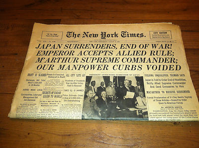 Title (ebay affiliate link): New York Times - August 15, 1945 - END OF WAR!!!