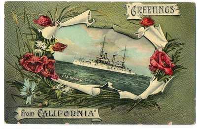 Title (ebay affiliate link): Great White Fleet Greetings From CALIFORNIA - USS KEARSARGE