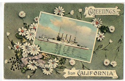 Title (ebay affiliate link): Great White Fleet Greetings From CALIFORNIA - USS MISSOURI